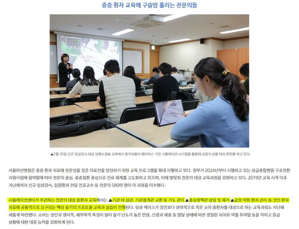 [2026.3.15] 서울아산병원 병원보 中 '중증 환자 전문의 교육 프로그램 강화