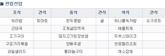 5. 식물성 기름(참기름, 들기름, 식용유, 올리브 등)은 한끼에 1-2 찻술 이하로 사용하며 조림, 찜, 무침 등의 조리방법을 주로 이용합니다.